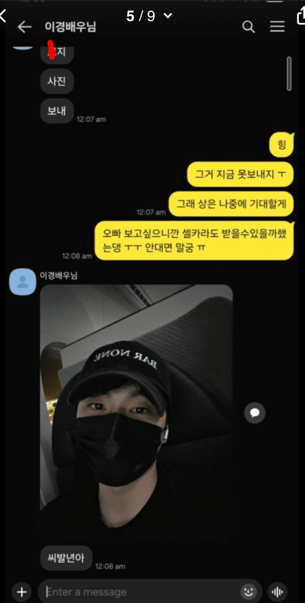 앞서 A씨는 '이이경님 찐 모습' 글에서 이이경이 여성에게 "보x 사진 보내" , "씨x년아" 라는 등의 신체 사진 요구, 욕설, 성희롱, 음담패설한 내용이 담긴 카톡/DM을 폭로해 충격을 안겼다.