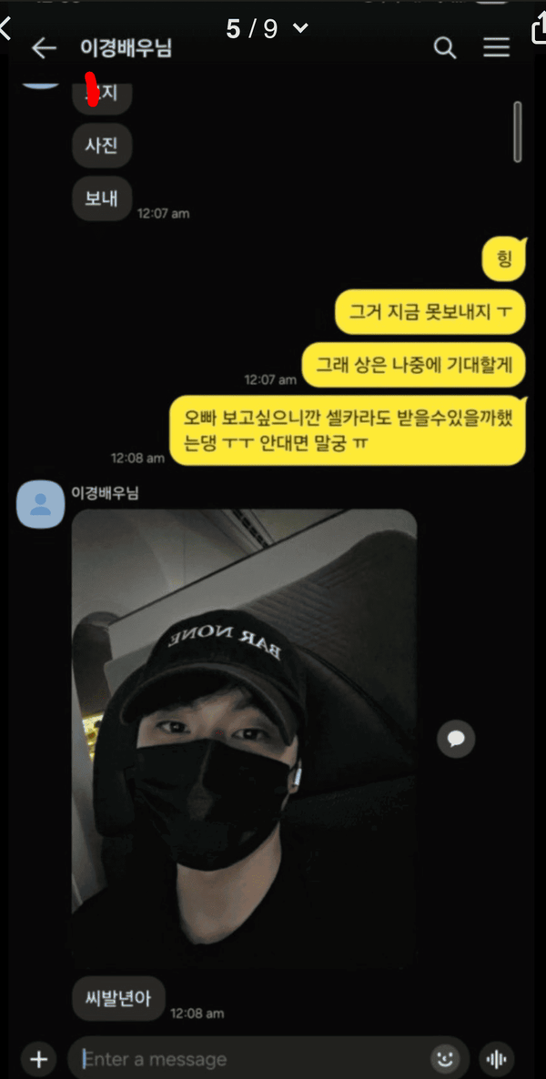 폭로글은 순식간에 확산되며 대형 논란으로 번졌다. 해당 글에는 이이경이라고 주장하는 상대방이 여성에게 노골적으로 신체 사진을 요구하는 것은 물론, 욕설과 성희롱, 음담패설까지 서슴지 않은 내용이 담겨 대중에게 큰 충격을 안겼다.