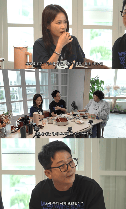 이를 들은 김준호는 한술 더 떠 "맨정신에는 뽀뽀 절대 못한다. (김지민이) 술 먹고 다음 날 '오빠 어제 우리 뽀뽀했냐'고 물어보더라"고 해 웃음을 자아냈다.