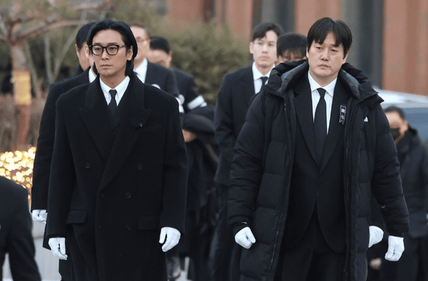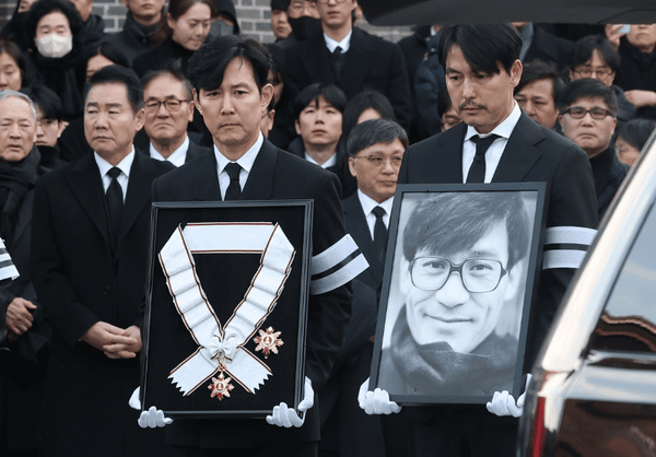 고인의 마지막 길은 후배 배우들이 든든하게 지켰습니다. 아티스트컴퍼니에서 한솥밥을 먹었던 후배 정우성과 이정재가 각각 고인의 영정과 정부가 추서한 금관문화훈장을 가슴에 품고 앞장섰습니다.