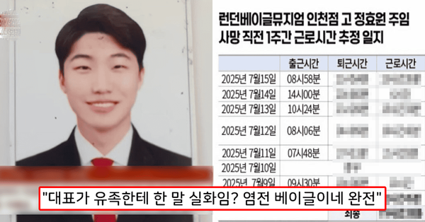 "충격적인 근무 시간 수준"...런배뮤 과로사 직원, 사망 전 스케줄표 공개 경악...'결국 노동부 착수'