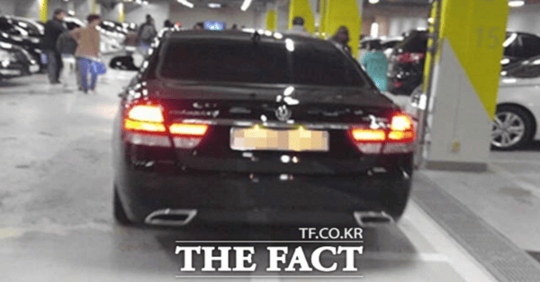주차장에 도착한 이 부회장은 삼성 관계자로 보이는 남성에게 "엣지, 골드, SK"라고 전달했고, 남성은 차량 트렁크에서 갈색 포장지로 싸인 상자를 꺼내왔다.