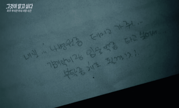 지난 13일 방송된 SBS '그것이 알고싶다'에서는 파주에서 발생한 부사관 아내 사망사건이 방영된 뒤 온 국민에게 충격을 안기고 있다. 아내 A씨는 몸이 심하게 부패한 상태로 발견되었으나, 남편은 아내의 상태를 몰랐다고 주장했다.