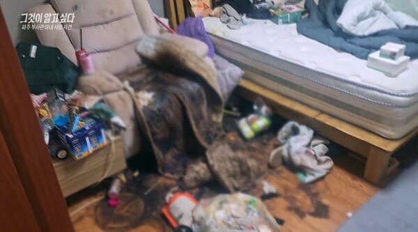 구급대원은 A씨를 본 순간 두 눈을 의심할 수밖에 없었다고 전했다. 그는 "전신이 대변으로 오염돼 있었고 수많은 구더기가 전신에 퍼져 있었다. 우리가 도착했을 때도 A씨가 대변을 보고 있었다. 이불도 대변으로 색이 변해 있었다"고 떠올렸다.
