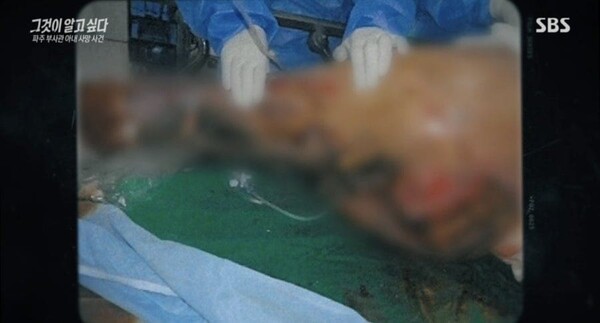 전문가는 "변이 나왔다는 건 계속 먹었다는 거다. 누군가가 음식물을 꾸준히 공급해 줬을 것이다. 그리고 이불을 목까지 뒤집어쓰고 있다는 건, 전신에 구더기가 있는데 본인이 혼자 했다기보다 다른 사람이 그렇게 했을 가능성이 높아 보인다"라고 말했다.
