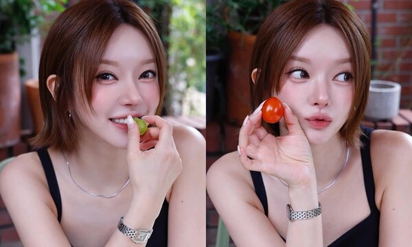 공개된 사진 속 초아는 블랙 민소매 원피스를 입고 방울토마토와 청포도를 들고 포즈를 취하고 있다. 단정한 단발머리와 모공 하나 없는 완벽한 메이크업이 조화를 이루며 상큼하고 청량한 매력을 발산했다. 특히 환하게 웃는 초아의 표정에서는 밝고 긍정적인 에너지가 물씬 느껴지며, 예전보다 한층 부드러워진 분위기가 시선을 사로잡았다.
