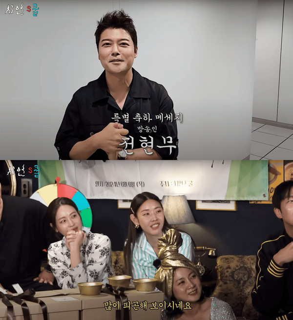 특히 이시언의 절친이자 한혜진의 전 남자친구인 전현무가 영상편지에 등장해 모두의 이목을 집중시켰다. 영상에 전현무가 나타나자 현장에 있던 동료들은 모두 깜짝 놀라며 한혜진의 반응을 살폈다. 이에 한혜진은 잠시 당황했지만, 영상 속 전현무를 향해 "많이 피곤해 보이시네요"라고 의연하게 대처하며 쿨한 면모를 보였다.