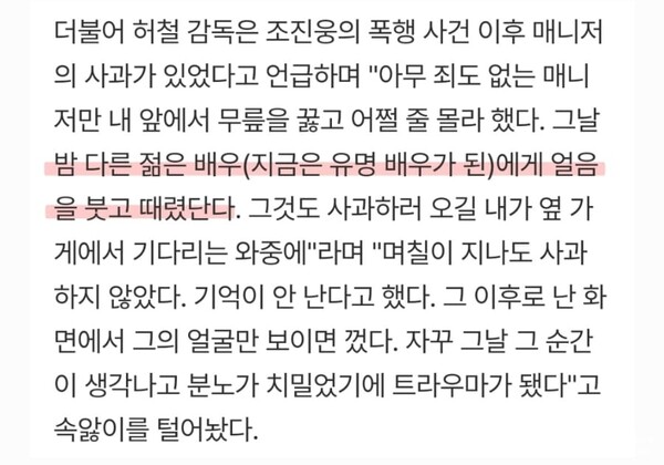 "과거 신인 시절 폭행→현재 톱스타"...조진웅에게 '얼음통 맞고 폭행 당한' 남자 배우 정체 밝혀져