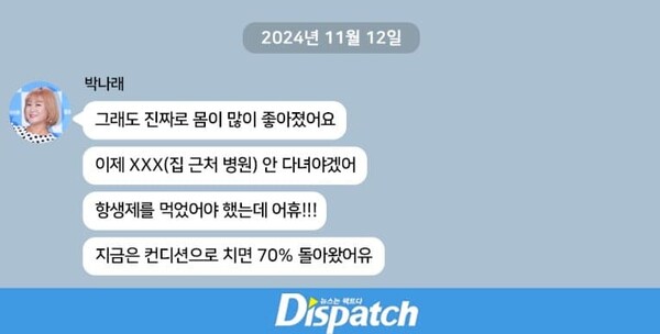 한편, 지난 12월 6일 박나래가 경기 고양시 일산의 오피스텔, 차량, 해외 촬영장 등에서 의사 면허가 없는 이 모 씨에게 주사 시술을 받고, 처방전이 필요한 향우울제 등의 전문의약품을 전달받았다는 의혹이 제기되었다. 당시 박나래 소속사는 "의사 면허가 있는 분에게 영양 수액 주사를 맞았다"면서도 왕진을 받았을 뿐 불법 의료 행위는 없었다고 해명했었다.