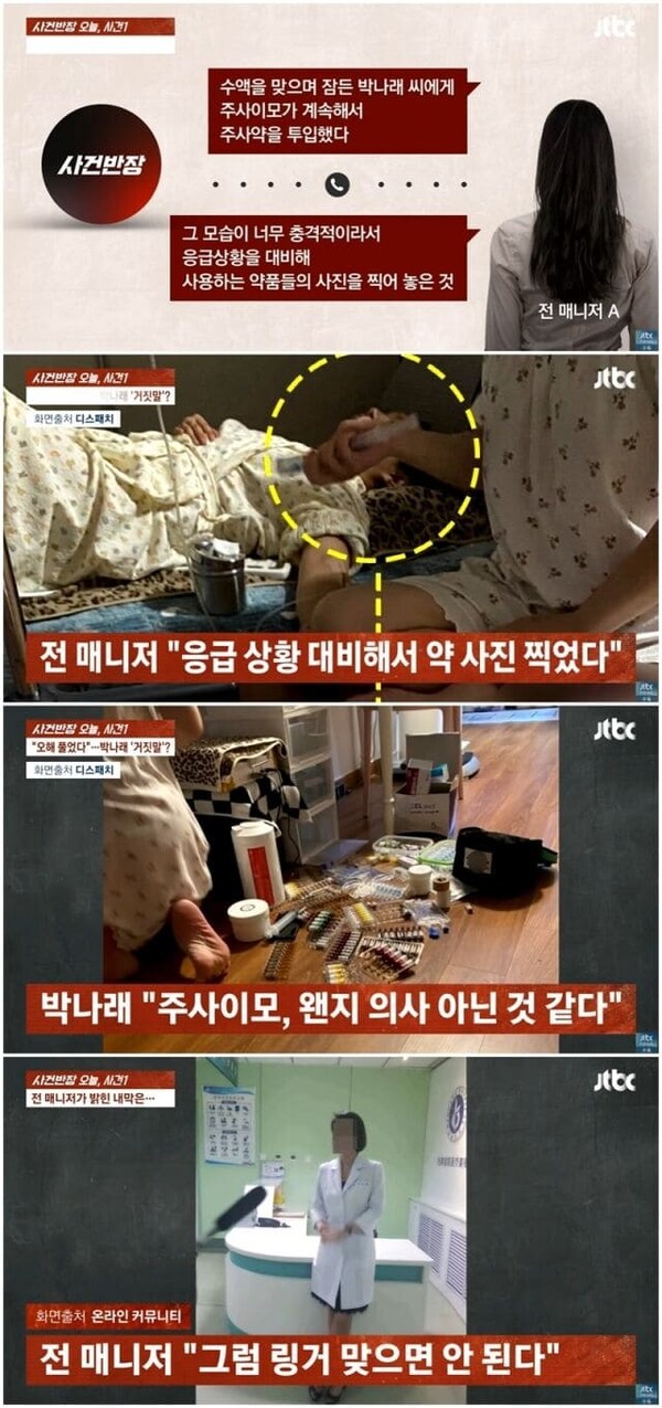 "혹시 몰라 증거로 찍어"...주사 이모, 박나래 잠들자 '여러가지 약물 계속 투입 충격' 매니저들 추가 폭로