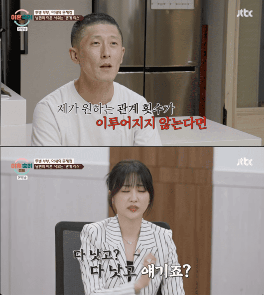 남편은 제작진과의 인터뷰를 통해 "이혼 접수 이유가 부부관계 리스 때문"이라고 직설적으로 밝혔다. 이에 스튜디오에서 서장훈은 "지겨워 죽겠네 정말"이라며 답답함을 토로했다.