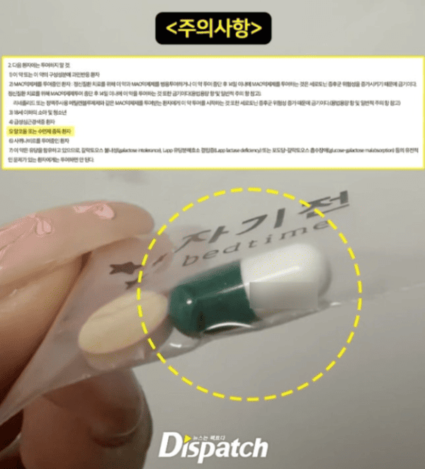 약봉지 사진을 본 최명기 정신과 전문의는 "분홍색 하트처럼 생긴 성분은 펜터민"이라며 "의사의 처방이 반드시 필요하다"고 강조했다. 그는 "해당 성분은 식욕을 억제하는 효과가 있고, 용량이 훨씬 많은 나비처럼 생긴 것도 있다"며 "부작용으로는 짜증이 나거나 심장이 두근거릴 수 있다"고 했다. 또 "졸리고 멍할 때 각성시키는 효과가 있다"며 "각성 효과를 줄이기 위해 술을 먹게 되는 악순환이 일부 벌어질 수 있다"고 염려했다.