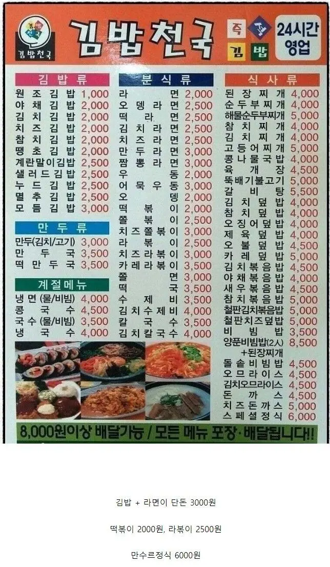 김밥 한 줄 1,000원 하던 시절 김천 메뉴판