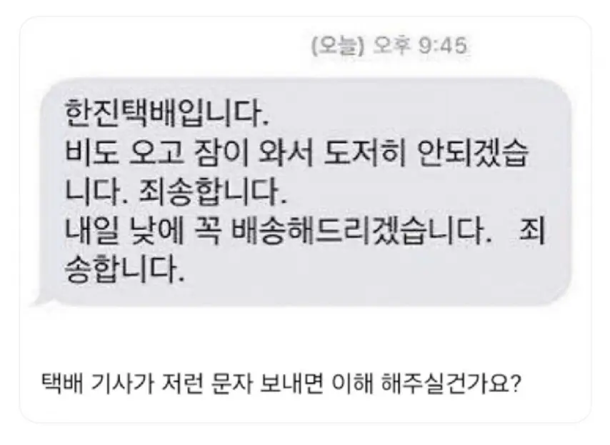 내일 배송해도 되겠냐는 택배 기사의 문자